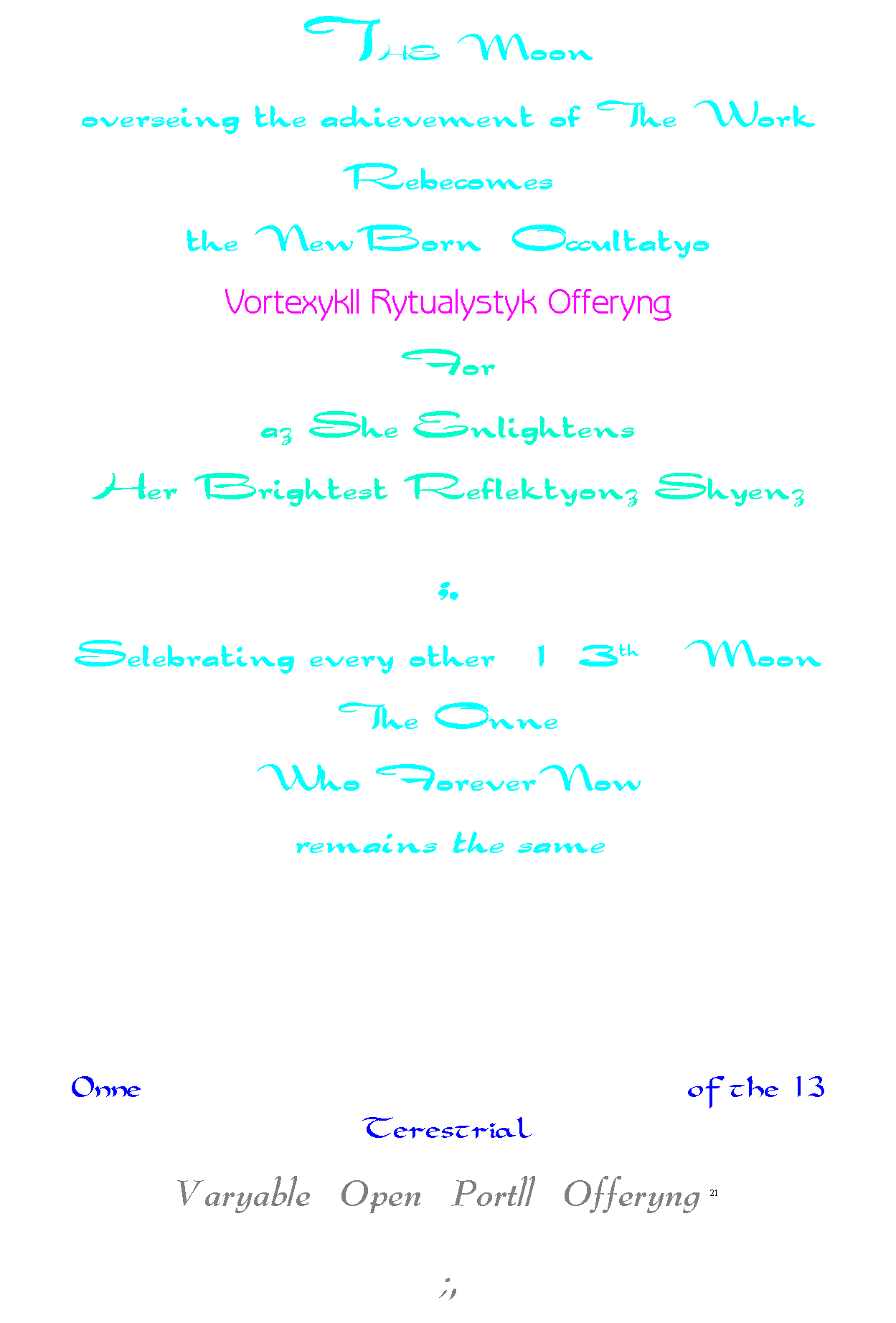 THE PURPOSE THE DIMENSIONALS THE CONSTRUCTION THE INTEGRATION THE OMEN THE CREATORS NOTES