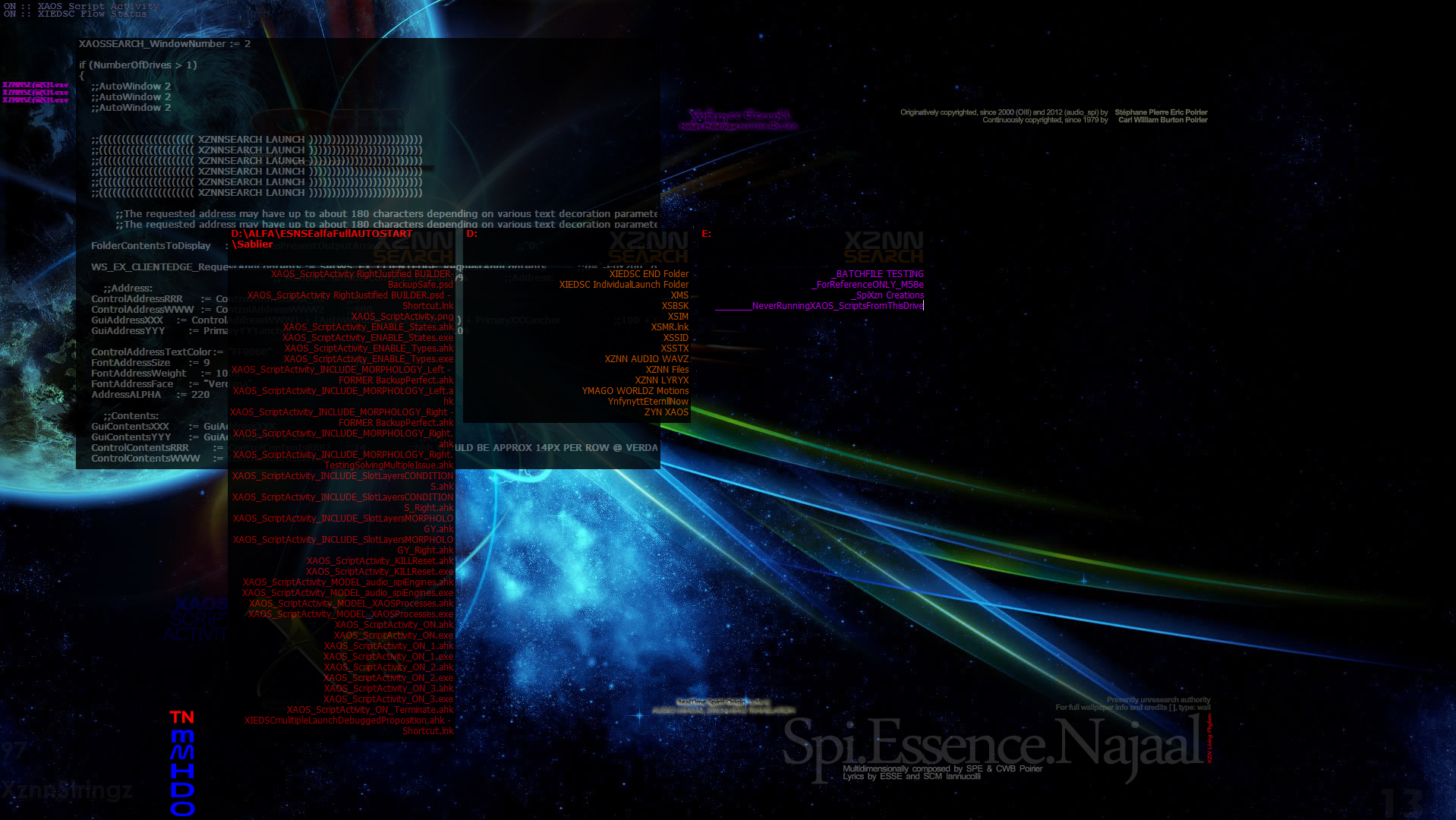 XI is meshed from the Ocean Loverz Offrandes created while Gyvyngz & Receyvyngz take place in this world. The True Matrix's Real&Data Base is primarily an essential Address Book containing the data pertaining to the Ones who effectuated these Offrandes. |