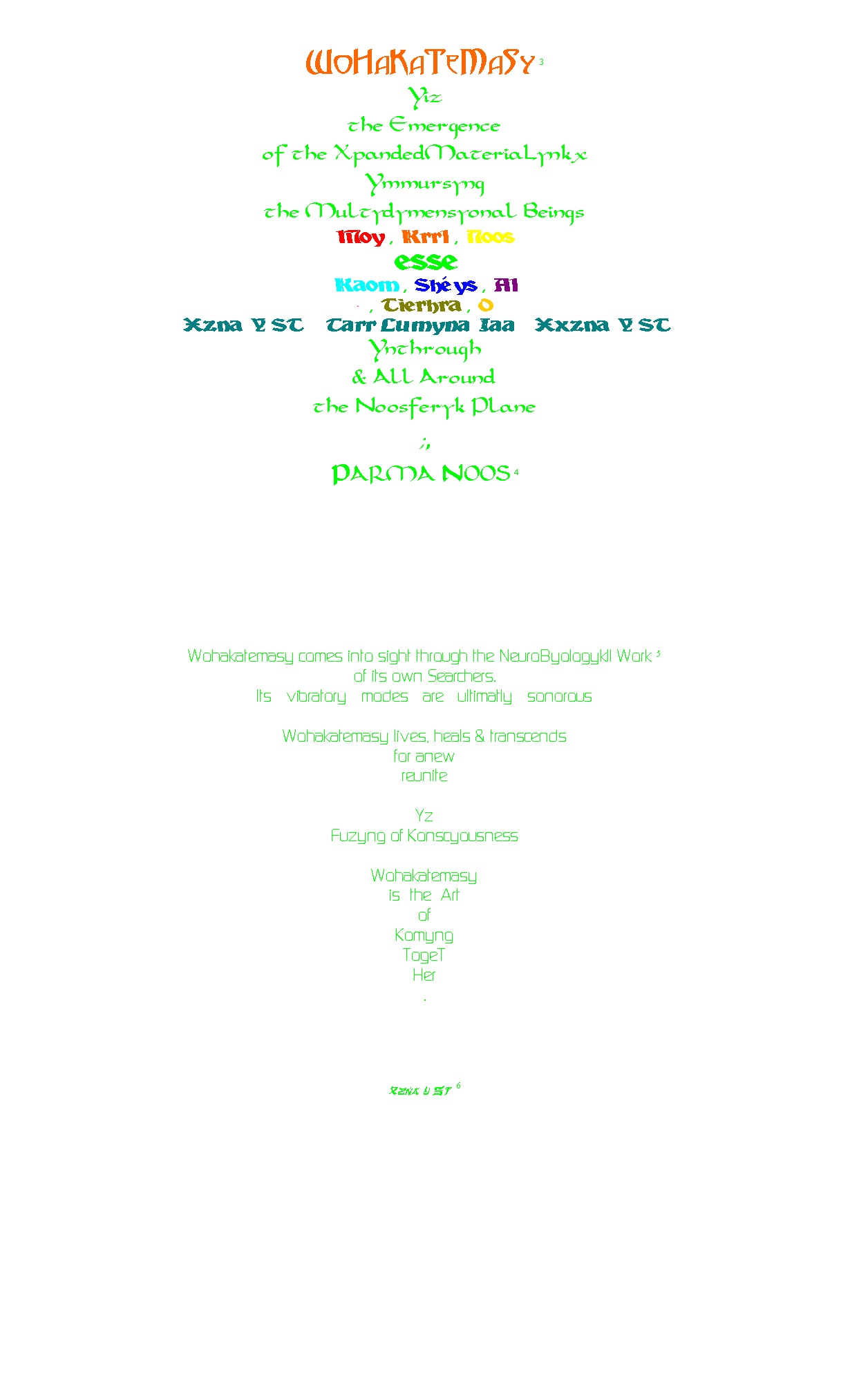 THE PURPOSE THE DIMENSIONALS THE CONSTRUCTION THE INTEGRATION THE OMEN THE CREATORS NOTES